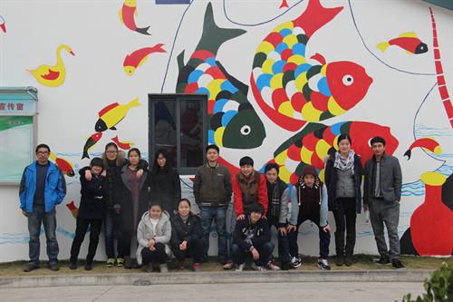 早在11月中旬,美术系副主任杜晨鹰与陈志明、何佳玮众教师便前往现场查看环境,经过一个多月的精心准备最后定下了壁画主题和草图。鉴于此次公益行动收到了良好社会效益,美术系师生还将继续前往舟山举办第二期、第三期活动,完成更多墙面的绘制,向当地老人献上艺院学子的爱心。