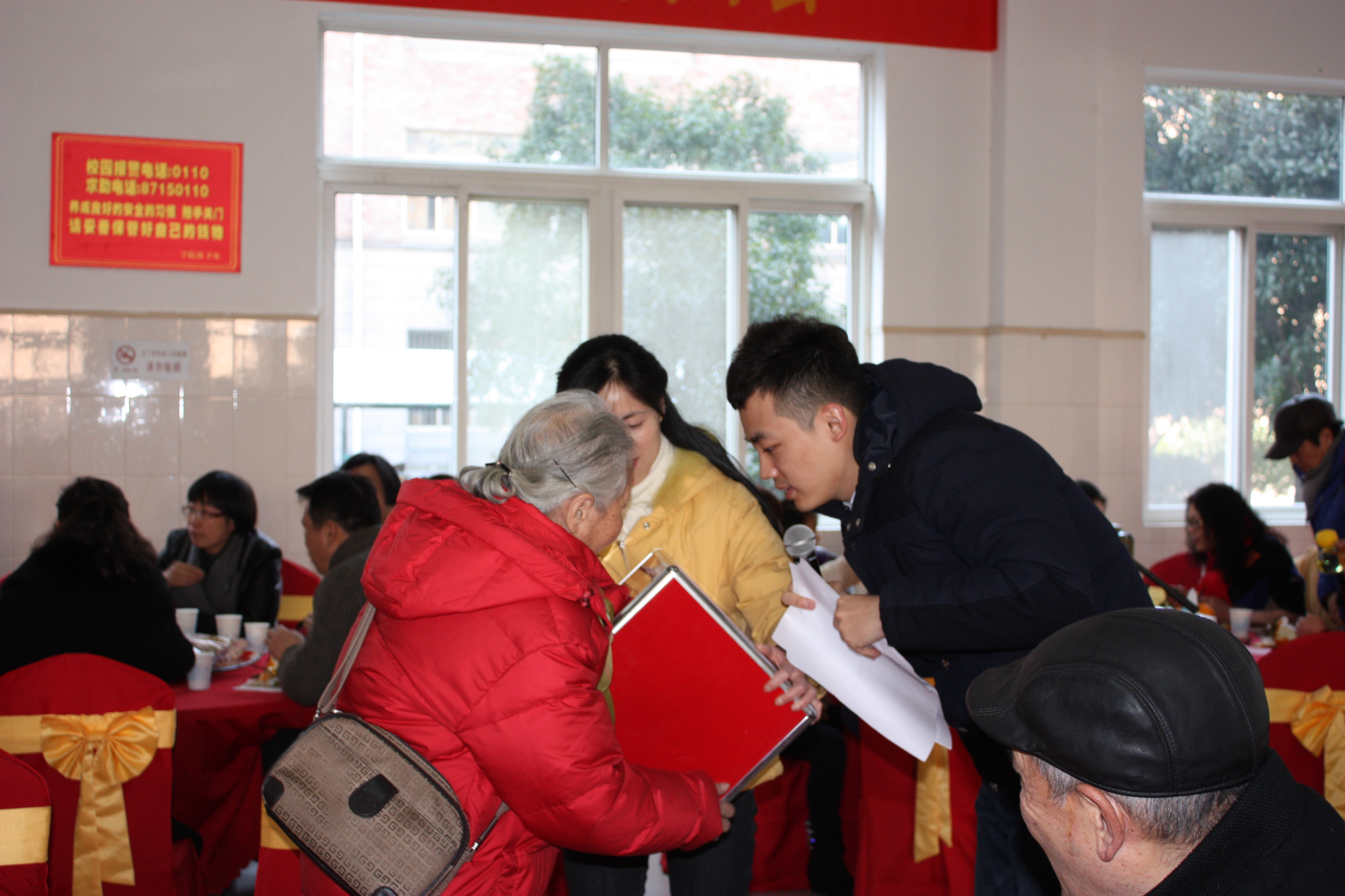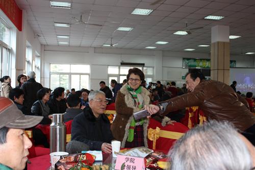 老同志们在现场互致新春问候,气氛热烈。团拜会还举行了抽奖活动。学院人事处、财务处、医务室等部门工作人员现场办公,为老同志提供“一条龙”报销医药费等服务。
