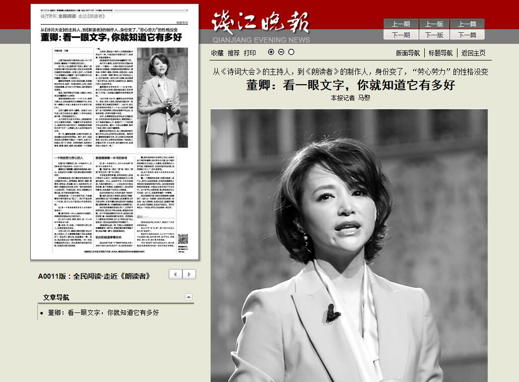 钱江晚报讯:董卿:看一眼文字,你就知道它有多好