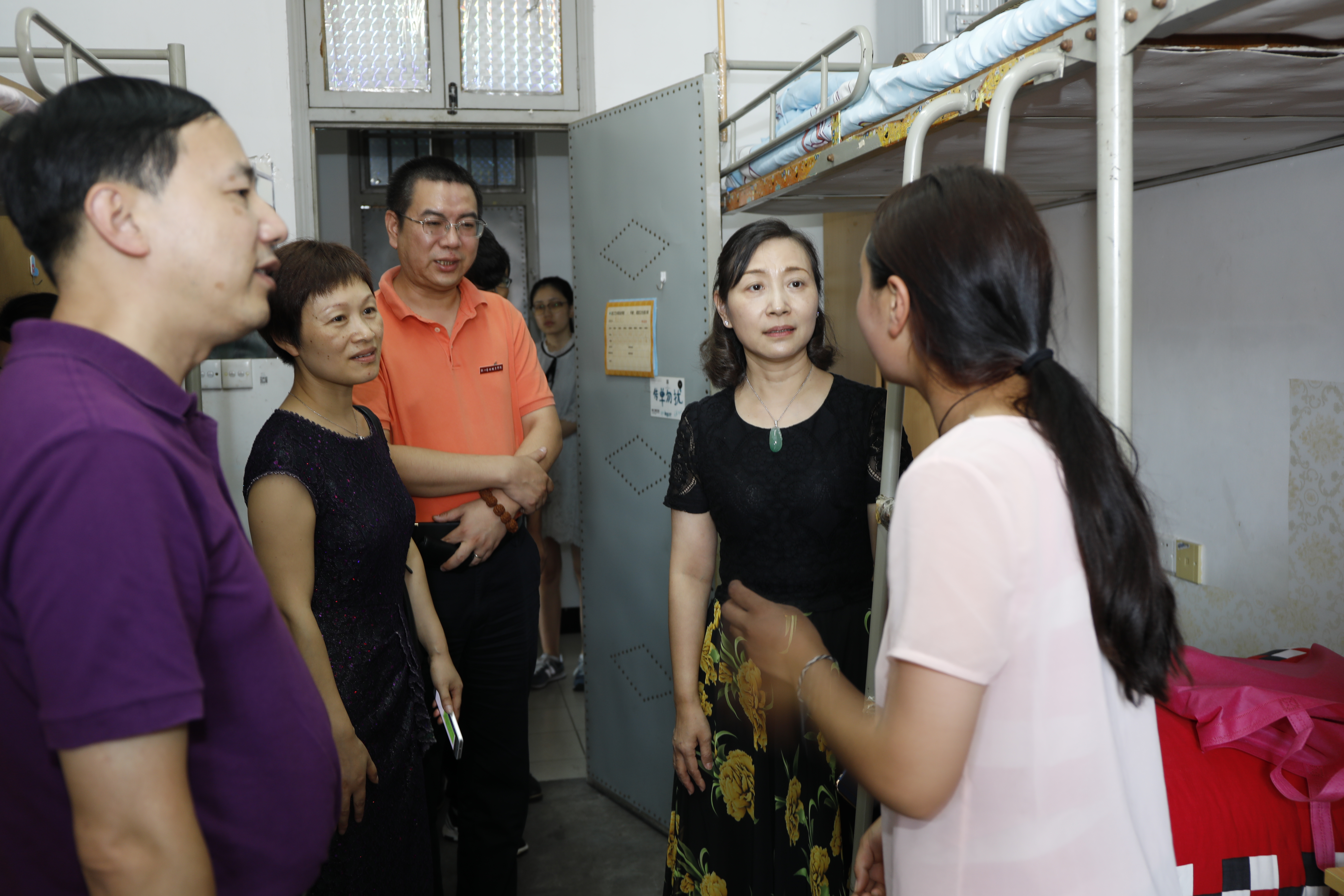在少数民族新生宿舍,院领导了解了他们的报到情况,代表学院对他们表示由衷的欢迎和殷切的期望。黄杭娟说:“来到了浙艺就像回到自己家一样,浙艺就是一个大家庭,遇到困难及时向老师报告,老师们一定会第一时间帮助大家解决。”她鼓励同学们团结友爱,尊重少数民族的习俗,在浙艺共同学习,共同进步。