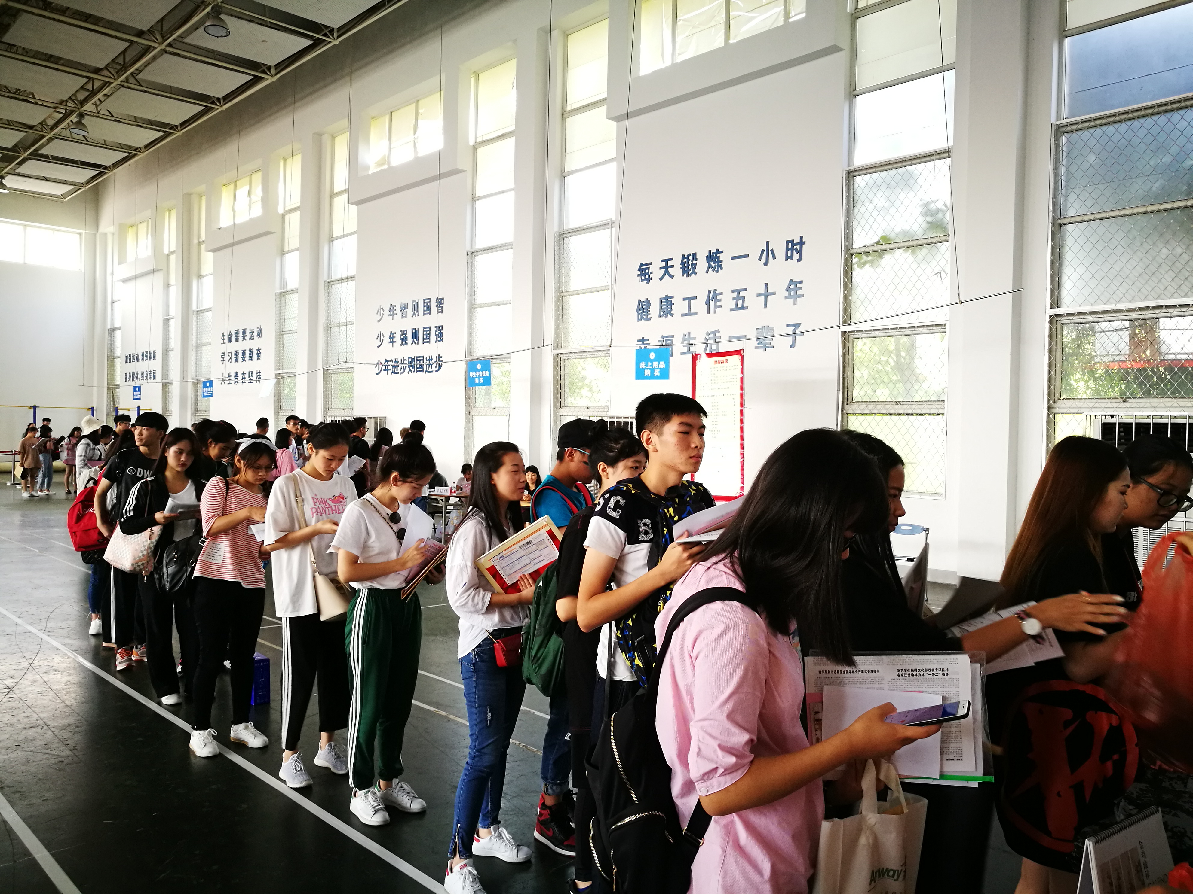 今天的杭州阳光正好,浙艺的体育馆里外萦绕着热烈的气氛,清晨就有从各地赶来的新生聚集在报到现场,在志愿者的引导下有序办理入学手续。度过了人生中最漫长的一个暑假,从嘉兴赶来的文化管理系17级策划班的许同学告诉记者,在新的学校,有遇见新同学的期待,有离开父母的不舍,其实更多的是对大学生活的期待,“这一切都汇集在今天,今天就成为人生里难忘而特殊的一天。”