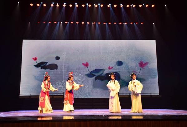 著名戏曲表演艺术家汪世瑜、朱元昊、刘建杨、陈晓红等,分别为昆剧、婺剧、绍剧和越剧代言,向现场大中小学生普及了各剧种历史,渊源和特色,或如文人雅士敲檀板唱“则为你如花美眷,似水流年”,或如铮铮男儿执金箍棒唱“妖怪今日命难逃”,或如芊芊女孩背花锄唱“花落花飞飞满天”。一位小学生妈妈说,非常难得看到艺术家们用这样通俗易懂的语言来解释戏曲知识,真希望孩子能上台体验一下戏曲,将这份传统文化传承下去。一位小学音乐教师则说,自己十分喜爱戏曲文化,也很想教给小朋友们。今天看了很多专业的表演,收获特别多,更加觉得学校应该引进这方面的教材,或者更多像自己一样的音乐老师能受到戏曲专业知识的指导,希望这份传统文化不要被时代所遗忘,让孩子从小汲取戏曲的美育教育。