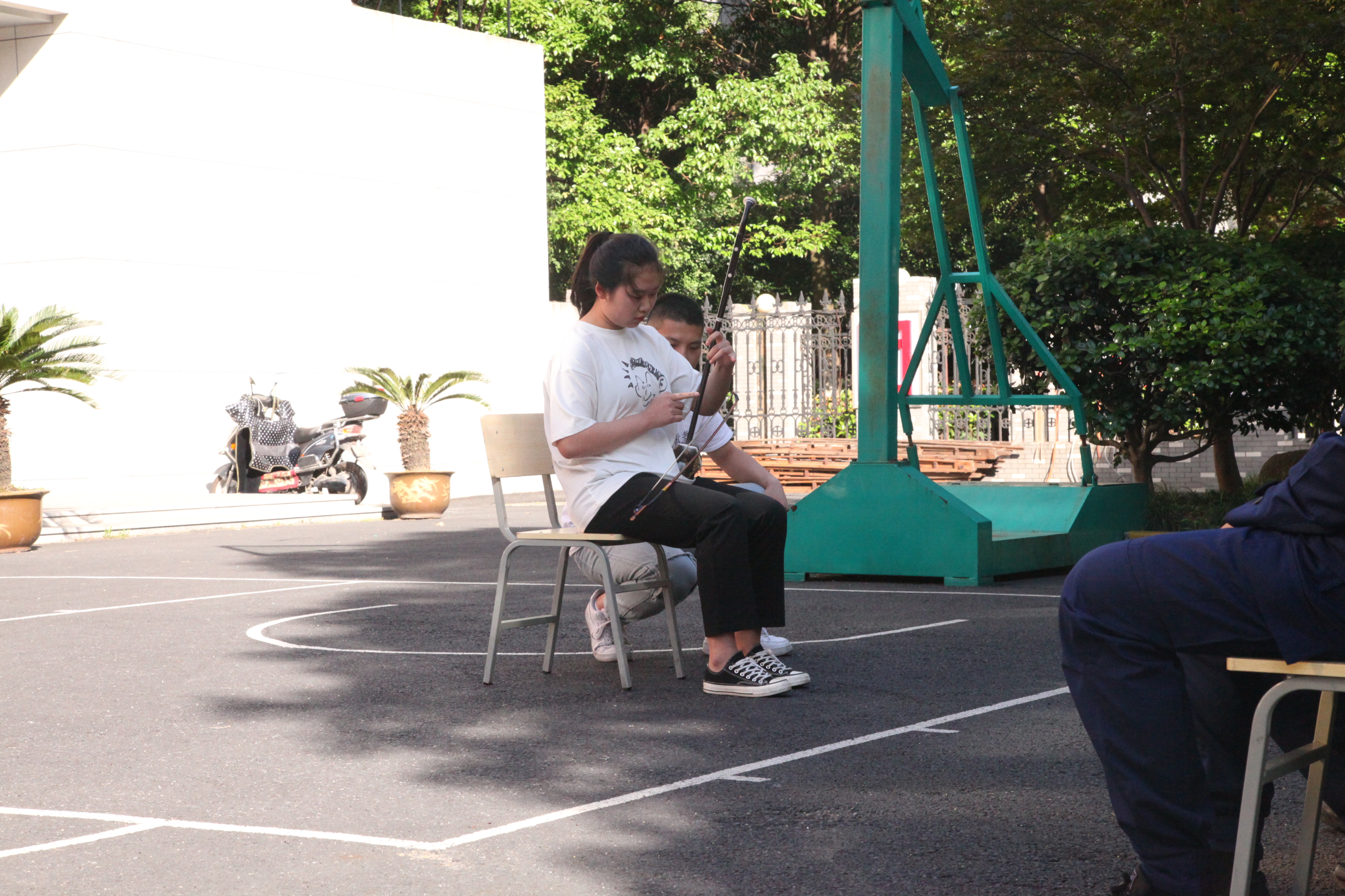 同学们将提前精心准备的节目献给消防战士们,在室外开展了一场文艺联欢活动,为消防员们送上夏日的清凉。舞蹈《SO HOT》、二胡独奏《赛马》、朗诵《祖国啊,我亲爱的祖国》、歌曲《仰望星空》、独白《祖国不会忘记》,一个个节目收获了掌声连连,欢笑不断。大家与消防员们一起做游戏,其乐融融。消防员们带来的合唱《人民需要我》歌声激昂,表达出对祖国和人民的责任感、使命感。