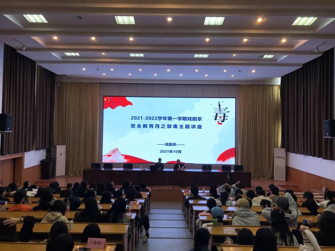 为进一步普及禁毒知识,提高学生识毒、防毒、拒毒意识。10月29日,戏剧系在图信报告厅举行安全教育月之禁毒主题讲座。戏剧系党总支专职副书记许瑛主持,2021级新生和五年一贯制200余名学生参加。