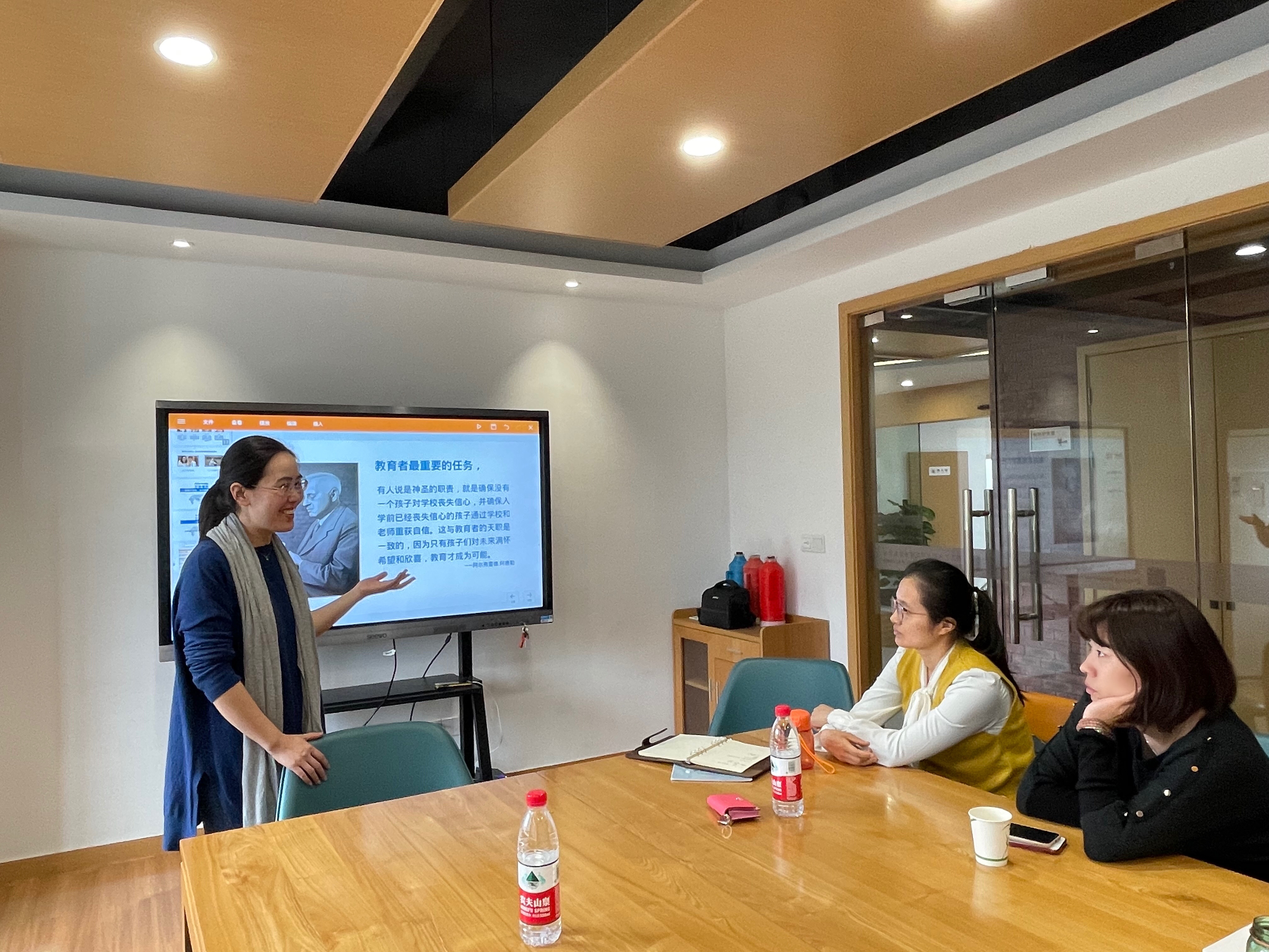 杨华京介绍正面管教的课程体系和概念,主要阐述如何既不惩罚又不娇纵地养育独立、自信、自律的孩子,如何通过建立和善且坚定的态度,帮助孩子培养有价值的社会和人生技能等内容。教师们对“正面管教”产生深深的共鸣,从中汲取优秀的管理方法。分享会结束后,各教师和杨老师就“正面管教”特色课程的引入,以及如何更好的帮助学前教育专业的发展进行研讨,为学前教育专业建设添砖加瓦。
