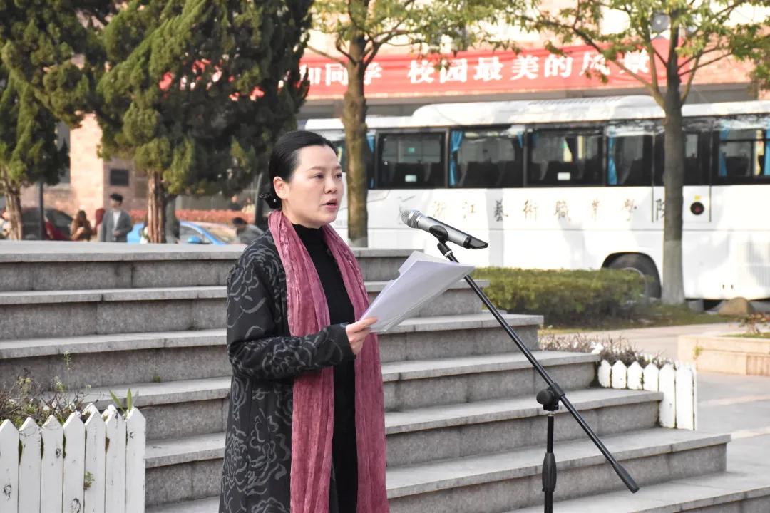 举行升国旗仪式和国旗下讲话,是浙艺一项传统爱国主义教育轮训活动,也是学习贯彻习近平新时代中国特色社会主义思想、加强学生社会主义核心价值观教育的重要载体。升旗仪式由戏曲学院教工党支部书记柴轶佳主持。随着仪仗队迈着整齐的步伐走向升旗台,雄壮的国歌声中,全体师生注目冉冉升起的五星红旗。灿烂的阳光下,鲜艳的五星红旗徐徐迎风展开,飘扬在浙艺美丽的校园上空。
