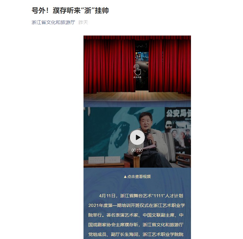 浙江省文化和旅游厅:号外!濮存昕来“浙”挂帅