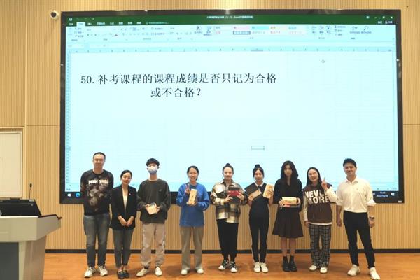 会议的最后,开展了新生学习手册知识问答,同学们积极抢答,现场气氛活跃,不少同学还获得了丰厚的小礼品。