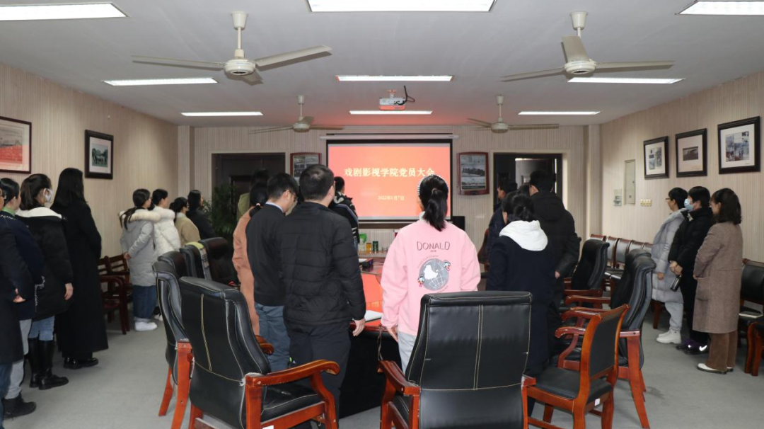为贯彻落实党的十九届六中全会精神,进一步加强基层党组织建设,切实增强党组织的组织力,1月7日,戏剧影视学院党总支全体党员大会在4210会议室隆重召开。