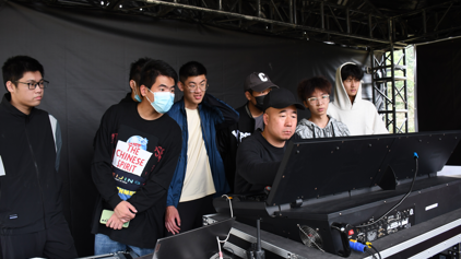 师生观摩学习调音师对歌手、乐器的声音调试,积极向音响工作人员提问,深入探讨专业音响灯光技术等问题。