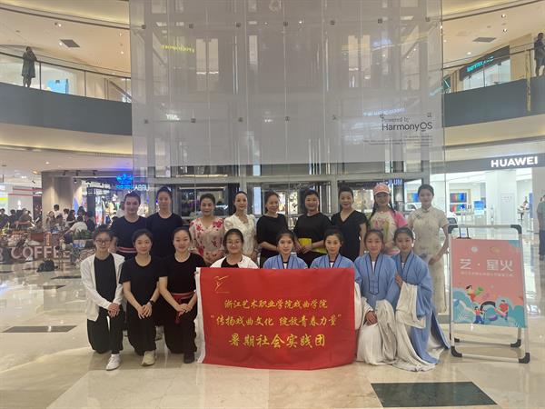 在缪海洁和耿绿洁两位老师的带领下,实践团成员与民营剧团学员组队,来到滨江艺术空间、宝龙城、滨文社区等地开展“文艺赋美”演出活动,丰富了民营剧团学员的培训内容,激发了民营剧团演员的学习热情,坚定了传播越剧艺术的文化自信。